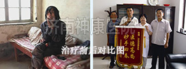 泰安马庄镇的村民巩大嫂患者有多年的精神分裂症,只要一发病脱了衣服就往外跑,看见围墙就往上爬,遇见邻居就破口大骂,丈夫为了防止妻子再次出去闯祸、扰乱邻居,无奈之下,只好用一根铁链锁住了她的双脚。2012年2月,巩大嫂的事件被媒体报道后,引起了神康医院的关注,经过一个月的综合系统治疗之后,巩大嫂面色红润了不少,生活已经完全可以自理了,自语自笑、妄想的症状也全部消失了,已达到临床有效治疗出院的标准。了解详情:被丈夫铁链锁脚的巩大嫂