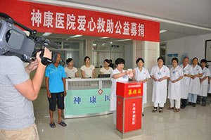 为了让高显臣早日有效治疗疾病的折磨和困扰,重新燃起生命之光,2012年8月24日上午10时整,济南神康医院在医院一楼大厅举行一场特殊的爱心募捐活动,医院几百名员工不约而同地加入到捐款的队伍中,五十、一百、三百不等,纷纷献上自己一份炽热的爱心。短短的半个小时里,医院就共募得捐款3万多元。